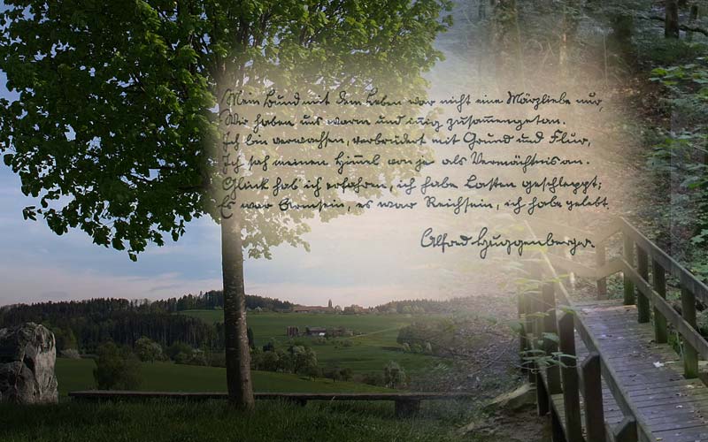 - Vernetzung mit Gleichgesinnten, Austausch mit anderen Literatur-, Kultur- und Heimatinteressierten, die sich für die Pflege der bäuerlich-ländlichen Kultur und Huggenbergers Werk einsetzen.